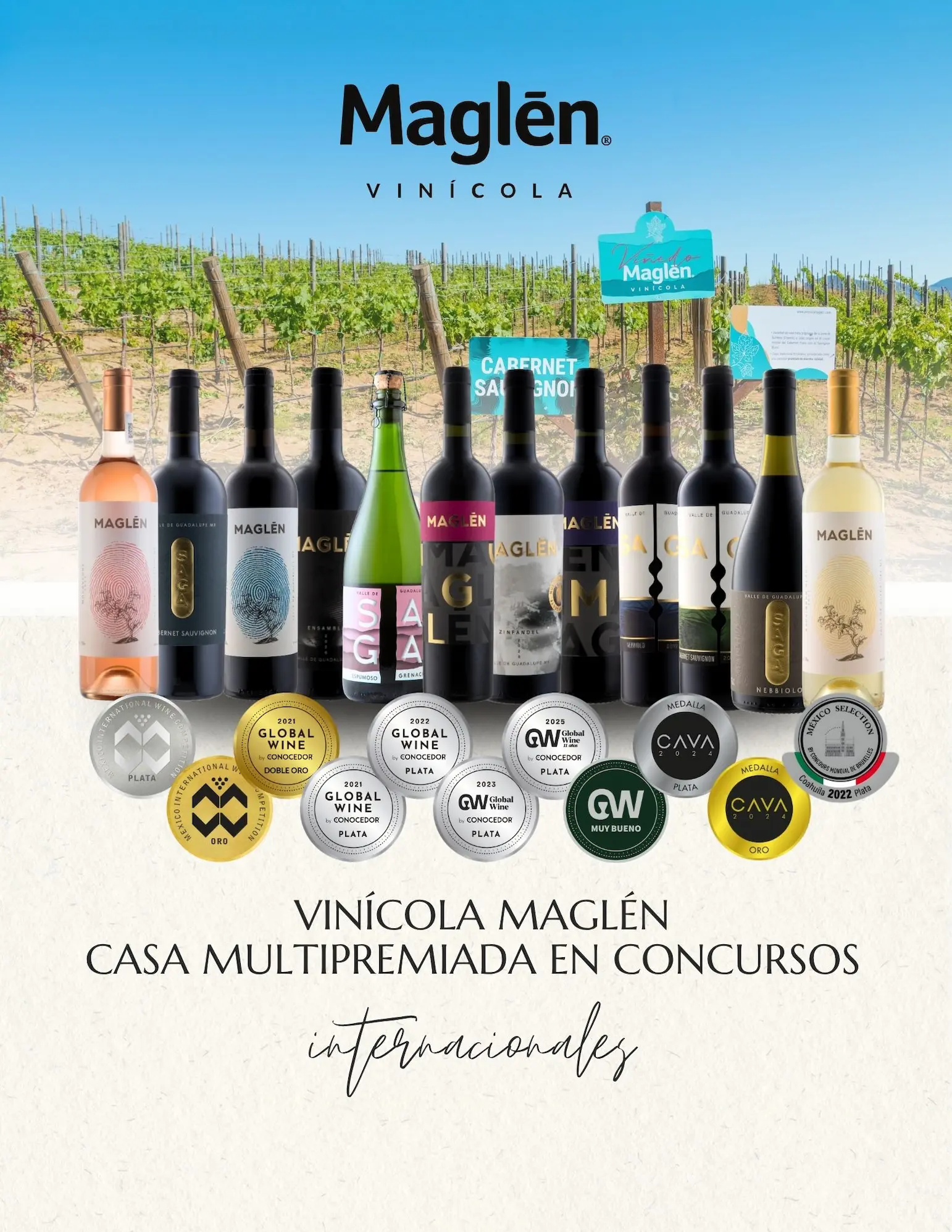A lo largo de nuestra trayectoria, hemos consolidado una línea de trabajo consistente que nos ha valido reconocimiento en escenarios internacionales como Global Wine, Concurso mundial de Bruselas, Mexico, International Wine Competition, Cava y más. Más allá de los premios, nuestra esencia radica en crear vinos versátiles, diseñados para acompañar distintos momentos y estilos de vida. En Maglén, el vino es el punto de encuentro entre el origen, la experiencia y quienes lo comparten.